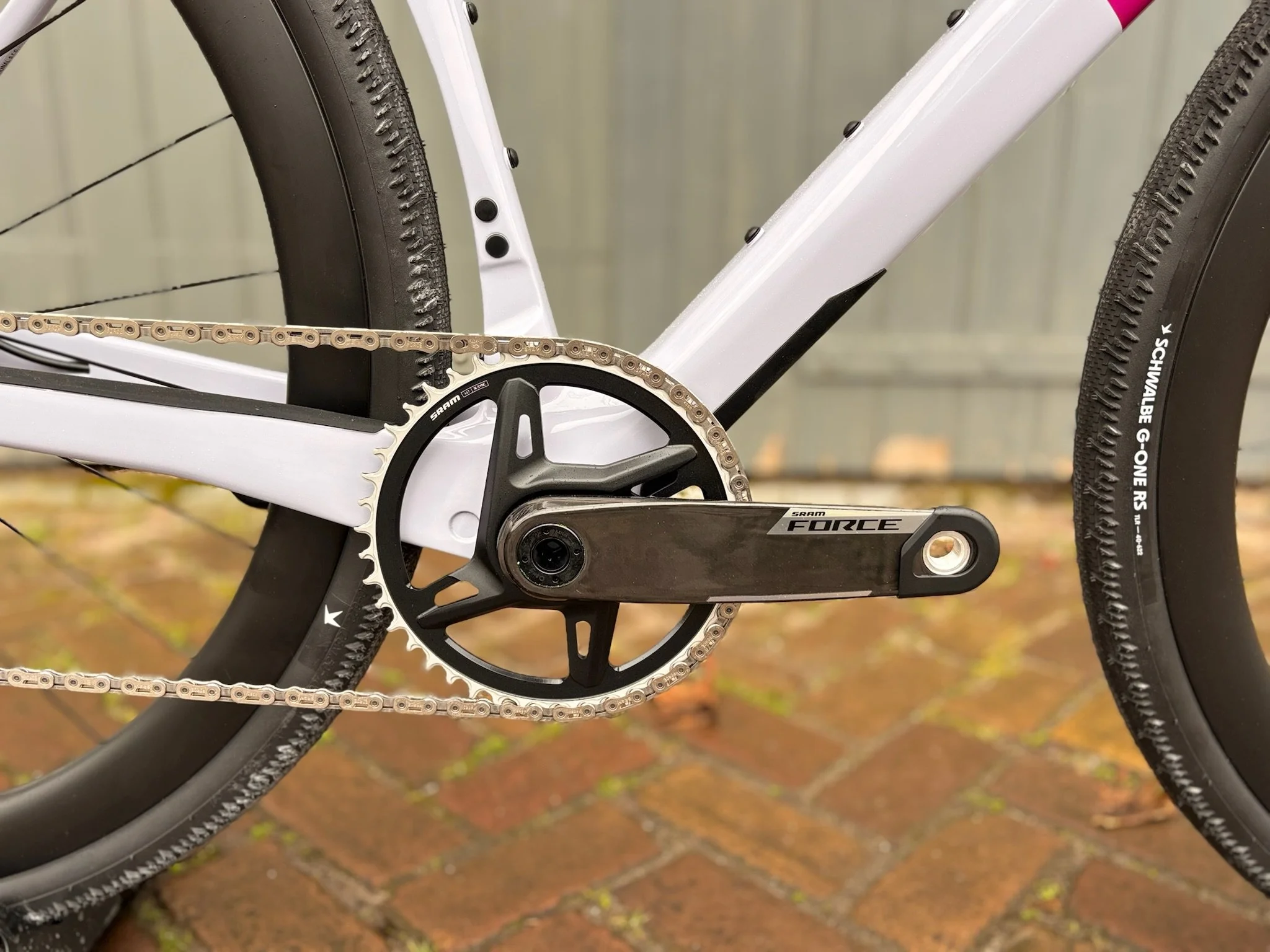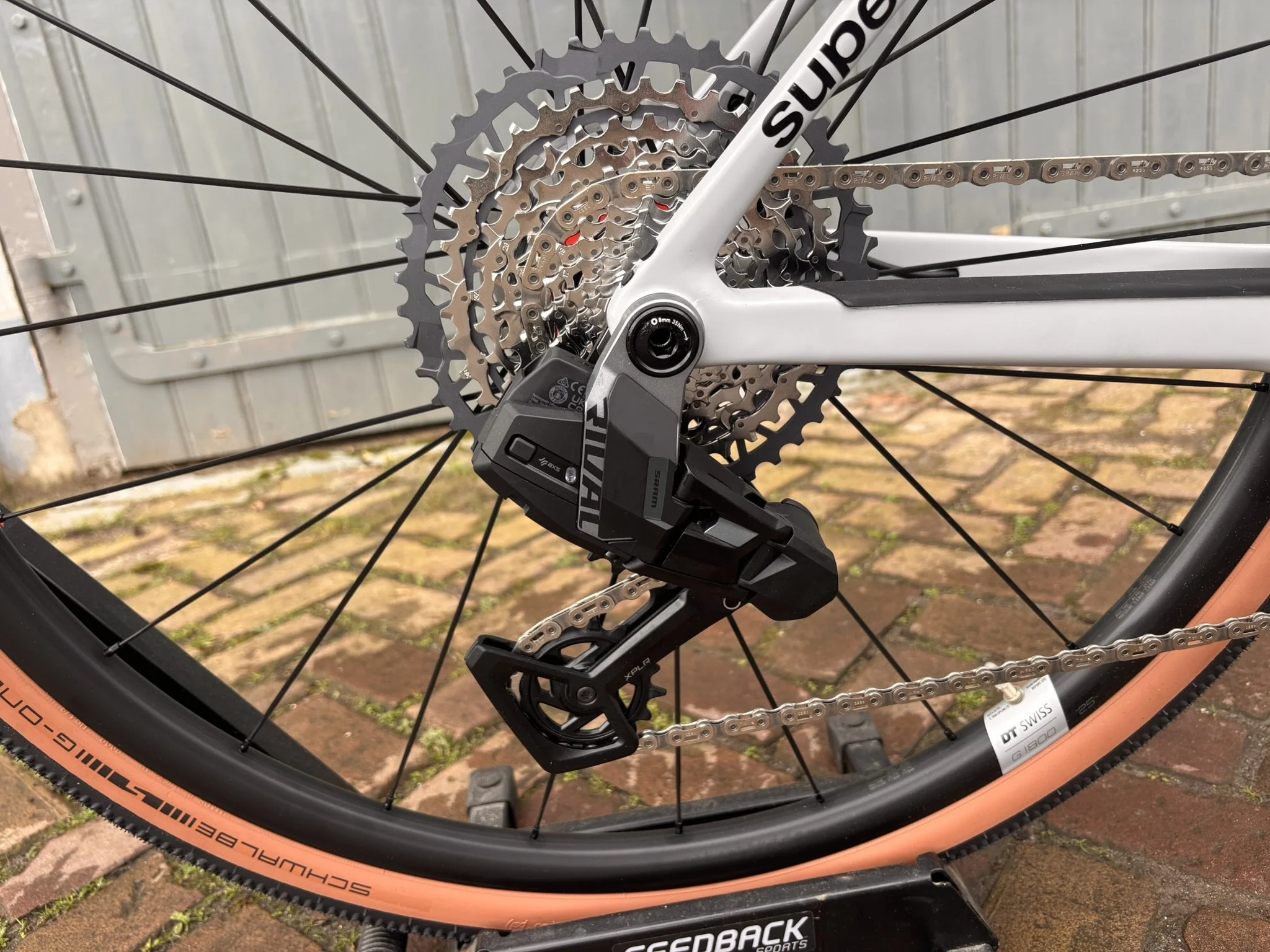 De fiets is afgemonteerd met de nieuwste SRAM Force AXS XPLR 1x13 groepset, wat zorgt voor uiterst strak en betrouwbaar schakelen. De combinatie met de DT Swiss GRC 1600 carbon wielset en Schwalbe G-One RS banden maakt deze fiets uitzonderlijk snel en stabiel op diverse ondergronden.